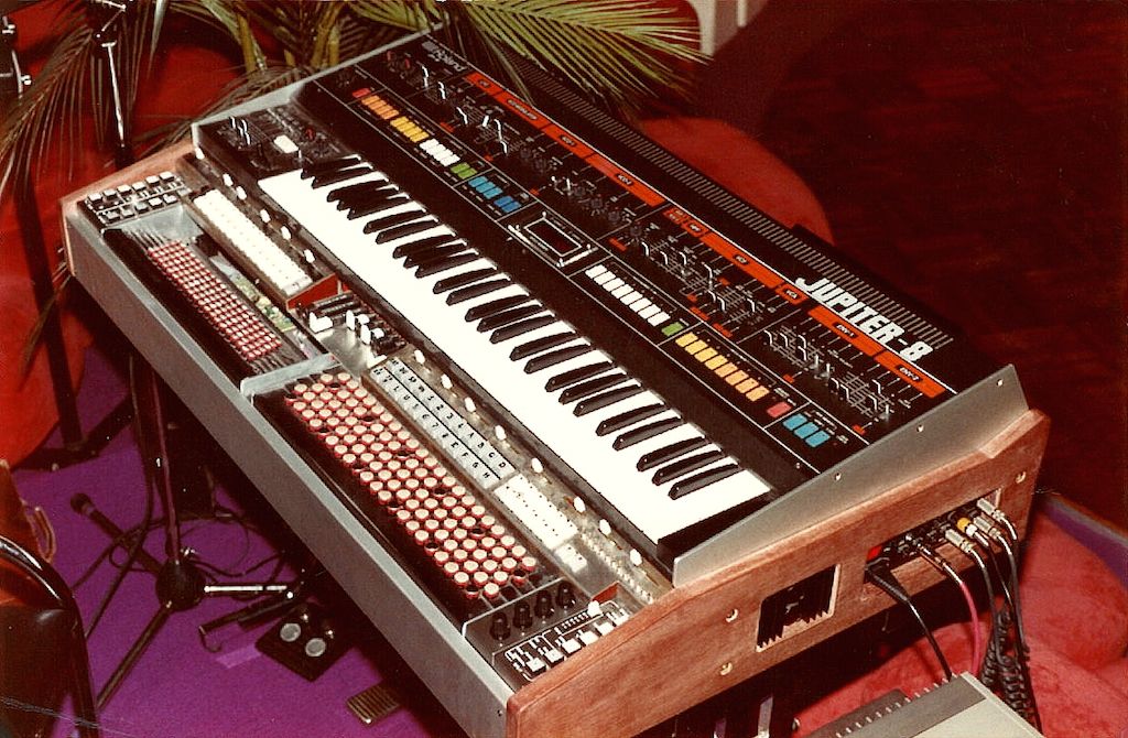 Roland Jupiter 8 with buttons accordion keyboard prototype (1982)