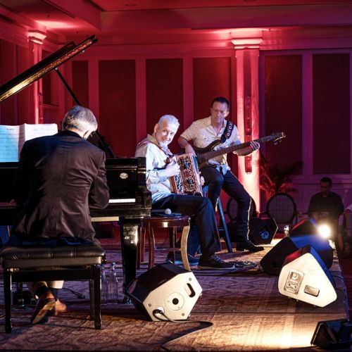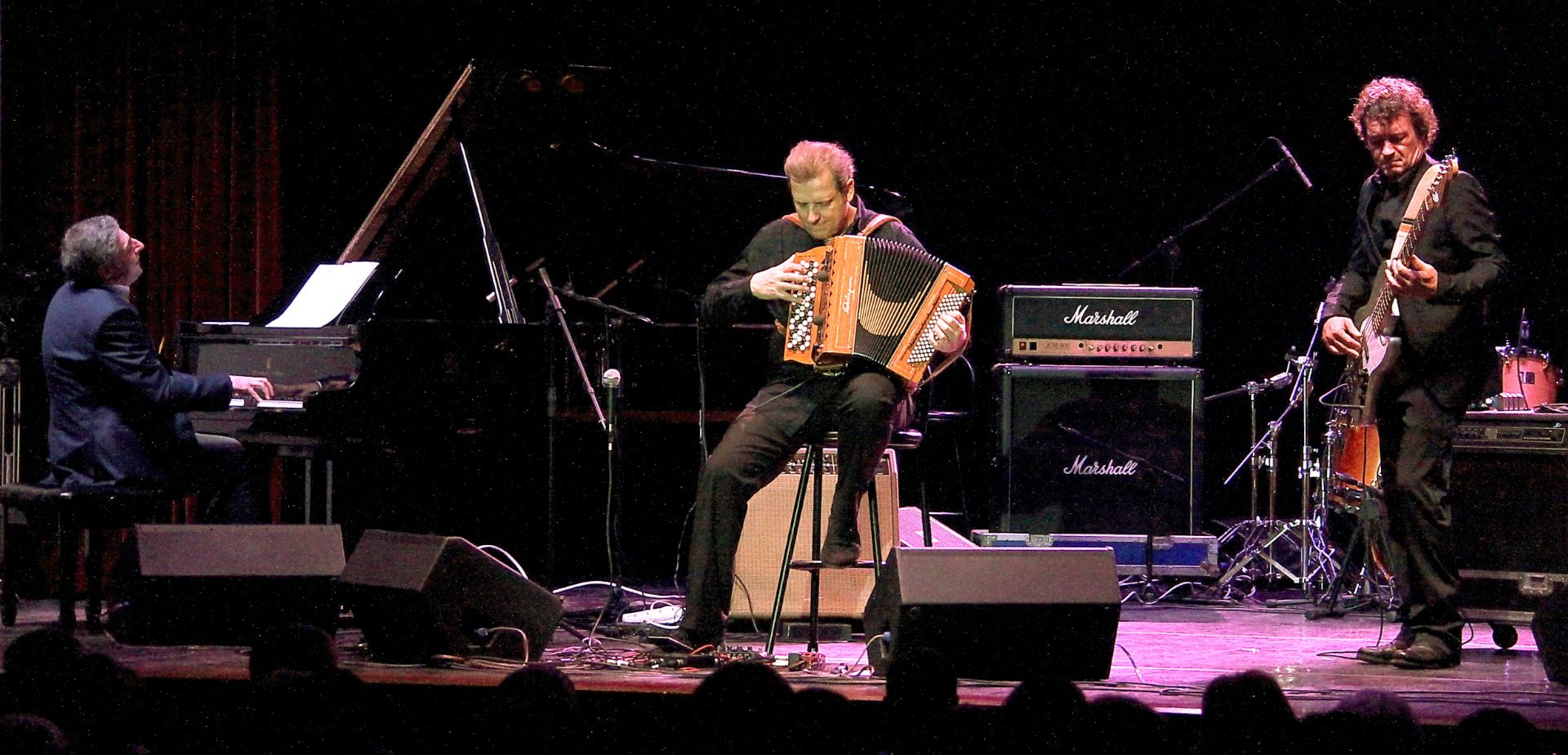 On connait le lyrisme, la virtuosité et l’authenticité de Giovanni Mirabassi qu’il n’est plus besoin de présenter. Marc Berthoumieux a le plaisir de partager la scène avec cet artiste exceptionnel depuis plus de dix ans. Par ailleurs est-on assez averti de la musicalité peu ordinaire de Laurent Vernerey ? surtout connu pour le millier d’album auquel il a participé, Laurent est sûrement le caméléon de la basse ayant été le plus demandé de la production musicale française ces vingt cinq dernières années. Il se révèle une fois de plus de façon remarquable dans cet exercice en trio.